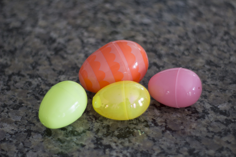 You know those cheap plastic eggs you fill with small candies and toys? This was what I used because I had a bunch of them in storage.