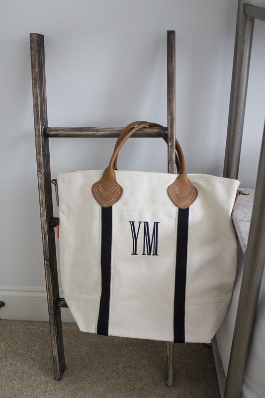 I keep a rustic ladder in the room to hold extra throws or for guests to hang their bags. I was surprised to see that Hayneedle offers personalized bags like this CB station flight travel bag. This is going to make an awesome travel/computer bag since it comes with a long strap as well. The quality is really great too and would make a special gift.
