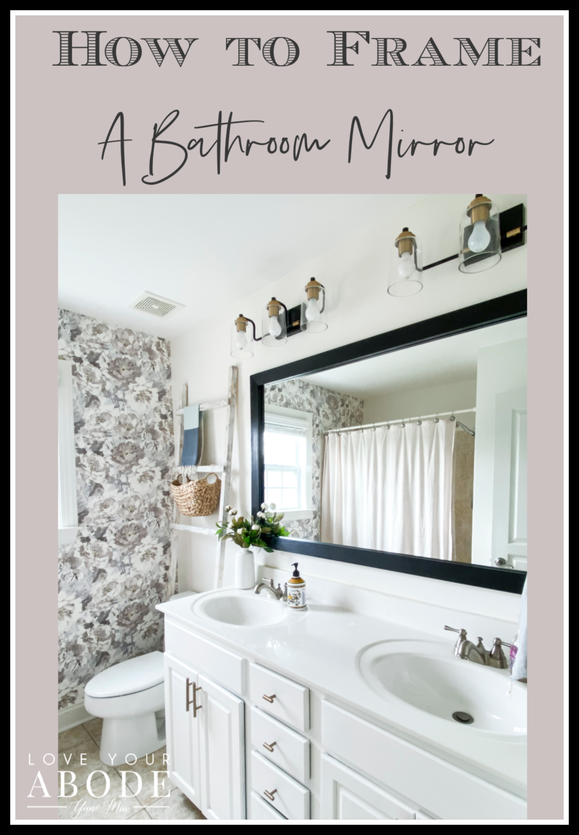As you know, I’ve been sharing easy DIY updates to the kid’s bathroom. My purpose is to share how you can give a beautiful facelift to your bathroom while staying on budget and avoiding demo. Instead of changing out the mirror completely, I decided to add a wood frame around it. Here’s how to frame a bathroom mirror with these simple DIY steps.
