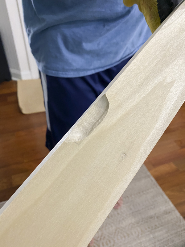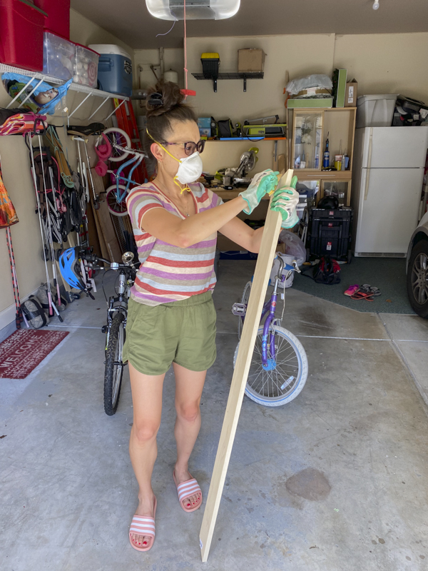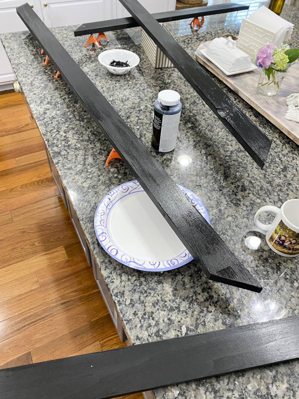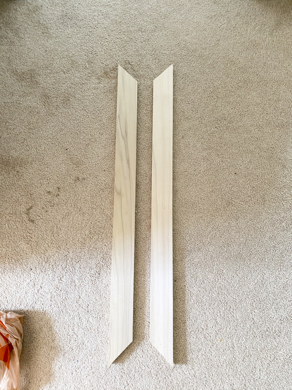 We cut the ends at a 45 degree mitered edge. I sanded down the edges to smooth out the wood finish before painting.