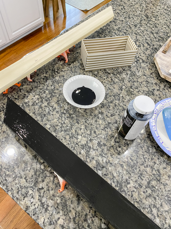 I wanted to go black since the bathroom is fairly neutral. Every space needs a bit of black in my opinion. I used the Curb Appeal Colonial Black paint for the wood and only needed one coat! I have used this same paint for my garage door, front door, staircase banister, and stone backsplash.