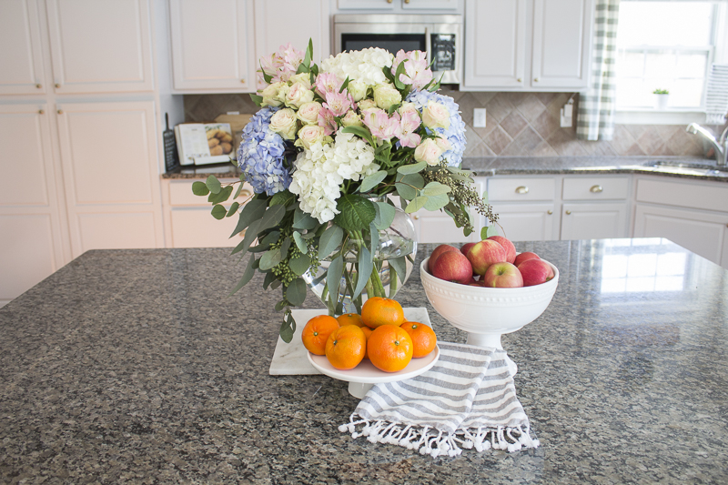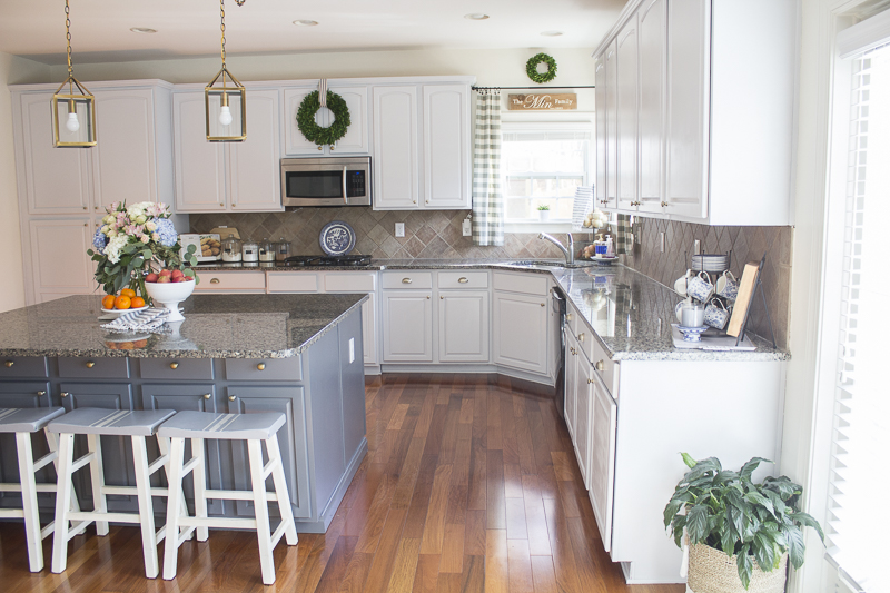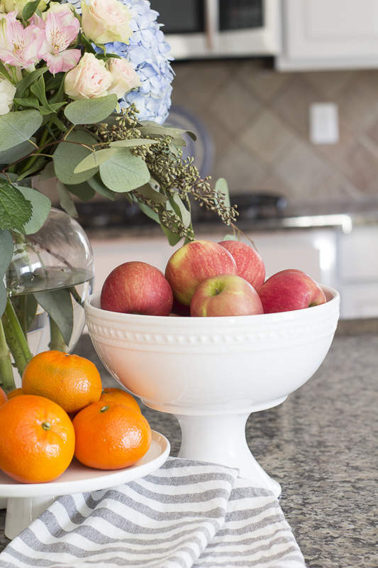 After our living room makeover with Home Depot, I painted the rest of the walls in the kitchen white to match. The new paint really brightened and cleaned up this space especially since there was a lot of smudges and handprints all over the walls. Life happens here a lot so that means crumbs and messes are all a part of our home. I’m just good at pushing them to the side when taking these shots. š