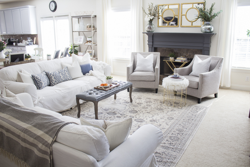 As you walk past the foyer, you’ll enter our family room that just received a complete room transformation.