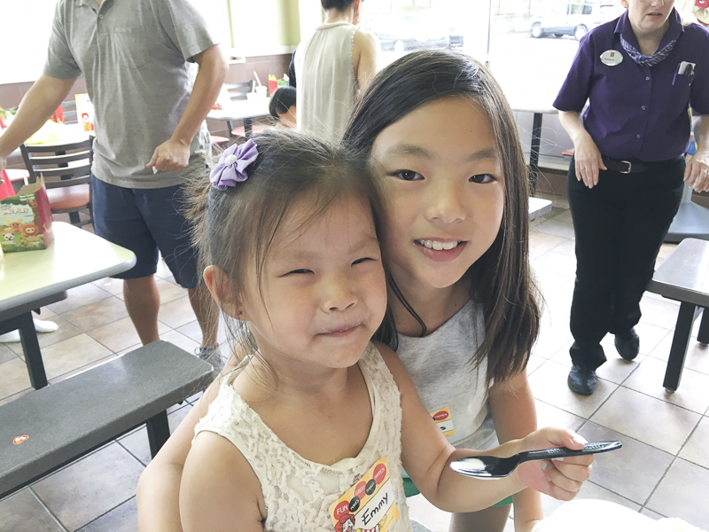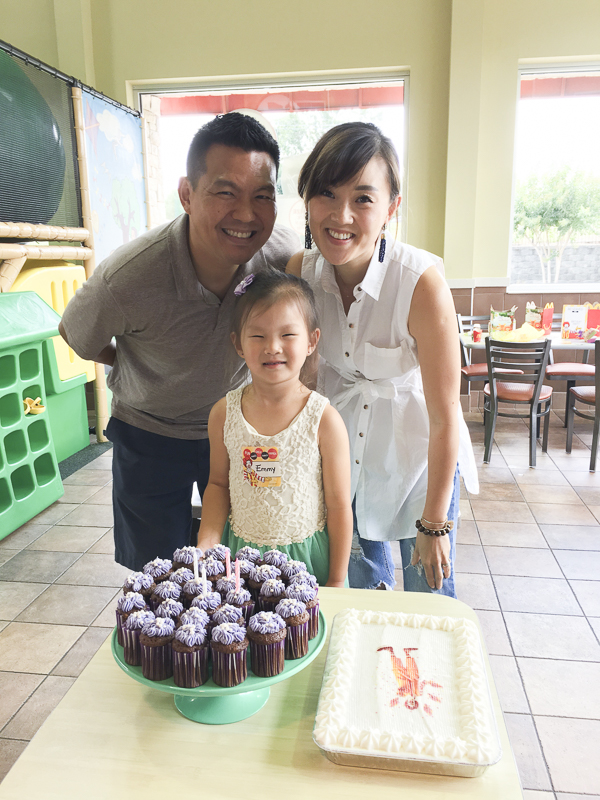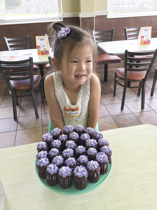 The parents ate big macs, fish fillets, fries, ice cream cones and socialized while the kids played in the playground. If you’re lucky to live near a large, clean McDonalds near you, this is the place to have your party! You pay a little more than a happy meal/child and you get to go home to a clean house. I’d choose Chick-fil-A too but they are always so darn busy and have much smaller play areas. Emmy was happy as a clam and had the best time. Honestly, I had the best time too because the only thing I did was bake cupcakes. I realized later that they also serve their own cake so I didn’t even have to do that! Oh well, you can never have too much cake I guess. Btw, this is not sponsored by McDonalds but I’m trying to share this awesome tip for all the tired mamas out there who don’t have the time or energy to throw a party. One of the kind workers there helped take care everything like getting placemats for the kids, activity booklets, little party favors and taking orders. If you have someone helping, be sure to give them a nice tip.