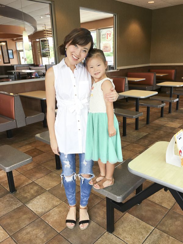I didn’t have time or the mental capacity to plan her birthday party this year. You can read about what’s been keeping us busy here if you missed my post recently which also shares where we are in the fostering timeline. Anyhow, one day while we were having a play date at our local McDonalds, one of my friends said, “look, those tables are reserved. It looks like there’s a party.” I immediately went up to the front and asked if they had parties because I had no idea you could do that. I booked the party right then and there and decided she was having a last minute party with a few friends at McDonalds. Recently, my friends and I started taking our kids to one near our house and it has become one of our favorite hang out spots. Any place that has a large and CLEAN indoor playground with nice AC during the dog days of summer is definitely a winner in my book. Plus, hello deliciously cheap ice cream cones and $1 large unsweetened tea. I know I’m southern but I can chug that unsweetened tea like it’s nobody’s business.