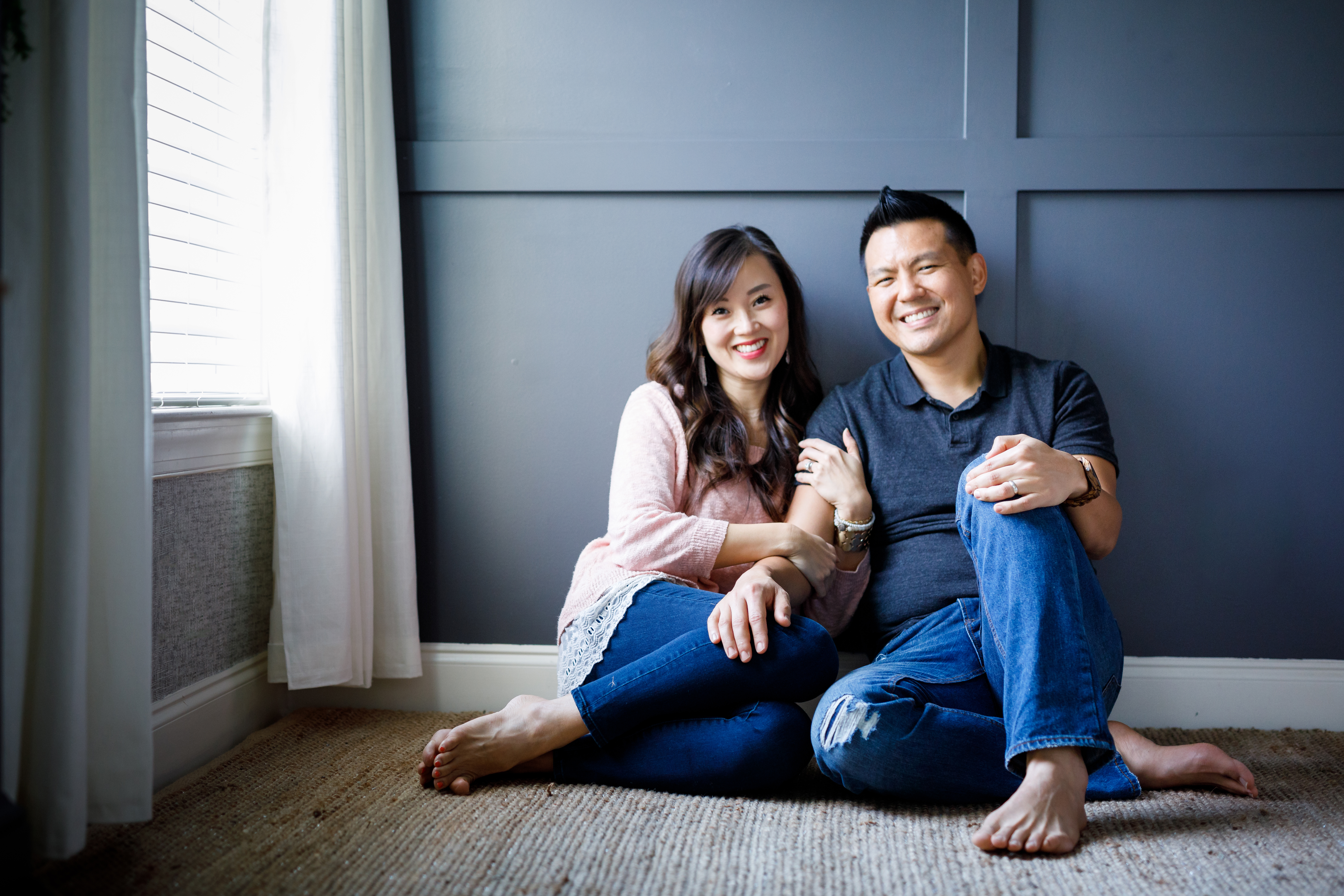 I didn’t have time to shop for clothes so we just put on stuff we already owned and ended up shooting against my favorite DIY wall in the house. Don’t look closely because I have some nail polish stains on my sweater and my toes have needed a pedicure for months. Some of our clothes need ironing too. If anything, this shows that sometimes just working with with you have is better than something new. It’s finding beauty in the imperfection because that’s real life.
