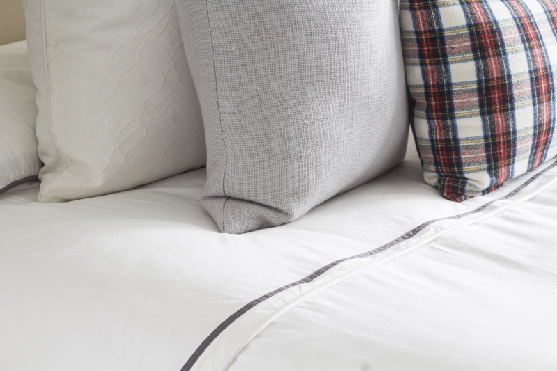 Each bedding comes shipped with a little lavender sachet so it smells divine. The Hayes duvet is 400 thread count cotton so it’s soft, luxurious and the most important part, it’s comfortable. The white edge piping adds a beautiful touch that gives it a tailored finish. There’s a unique zipper right where that stripe lining is so it makes doing laundry a breeze. It also made it easier for me to insert the comforter inside which can always be so dramatic. Just imagine me sweating profusely wrestling with the comforter and duvet trying to get it in those corners. Anyone else or just me?