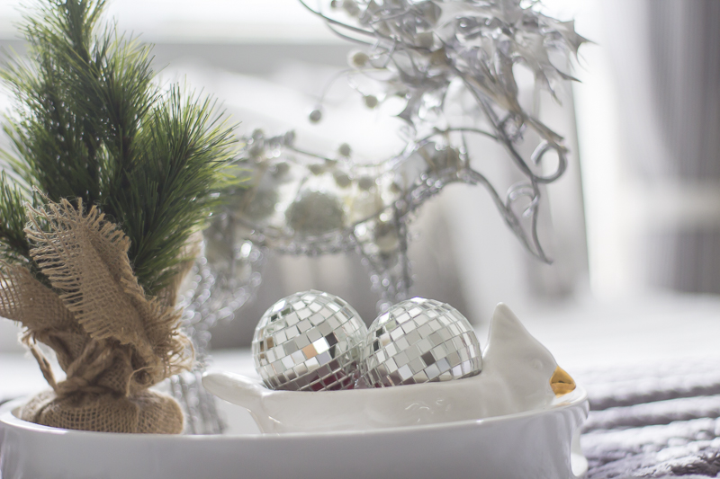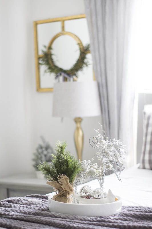 I haven’t made much changes to this room except switch out small decor items here and there. Adding a tray with a few ornaments and a faux tree add some festive details to the space.