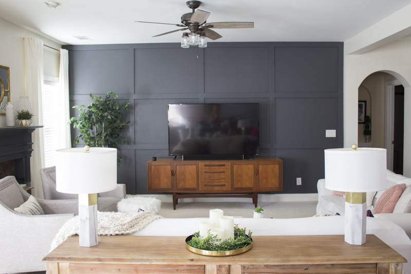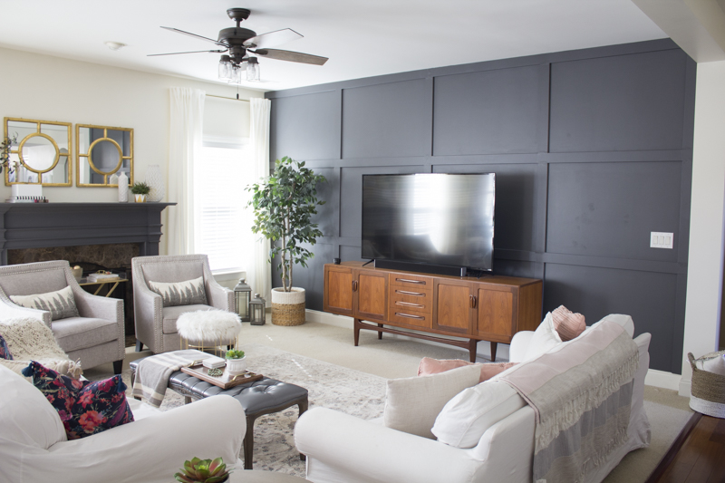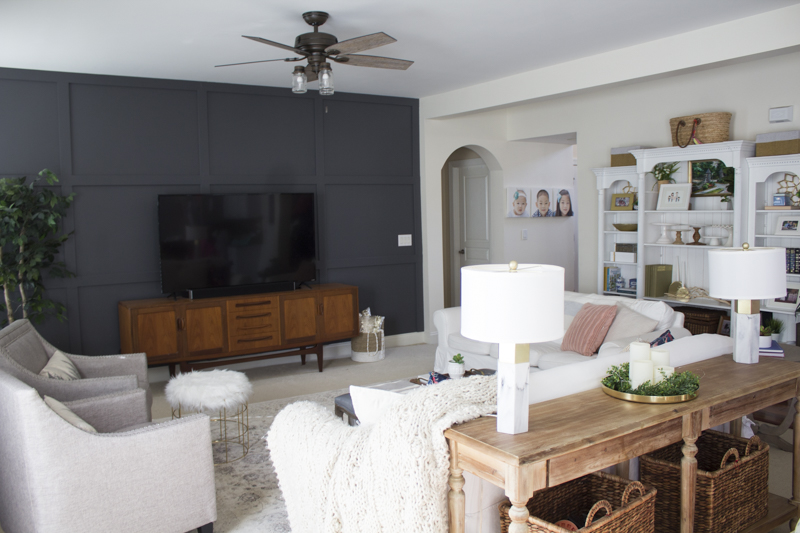 Ever since we did the dark paneled wall in our family room, I love the drama it adds to the space. It adds character and warmth to an otherwise very neutral room.
