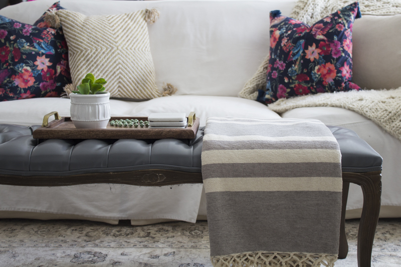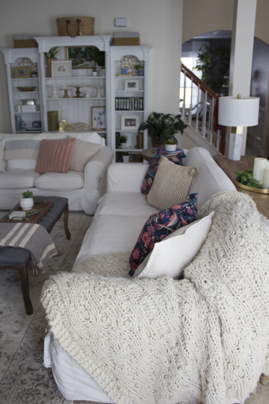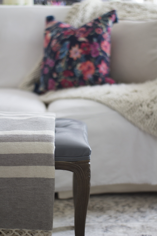 Nothing says cozy like a good throw on the bed or couch. I always have multiple blankets laying on our couches because we love snuggling with them in the evenings. I love our large knitted throw and it really adds a lot of texture and warmth to the space. Textures in pillows also add an element of coziness to any space and I love mix and matching them.