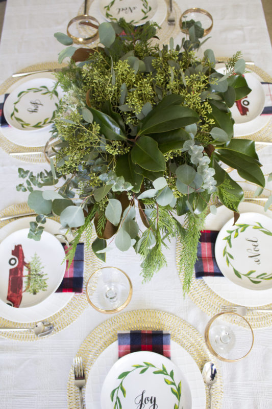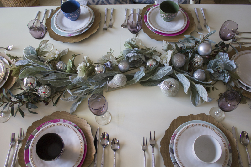 The centerpiece is just a long faux garland with some extra branches and ornaments.