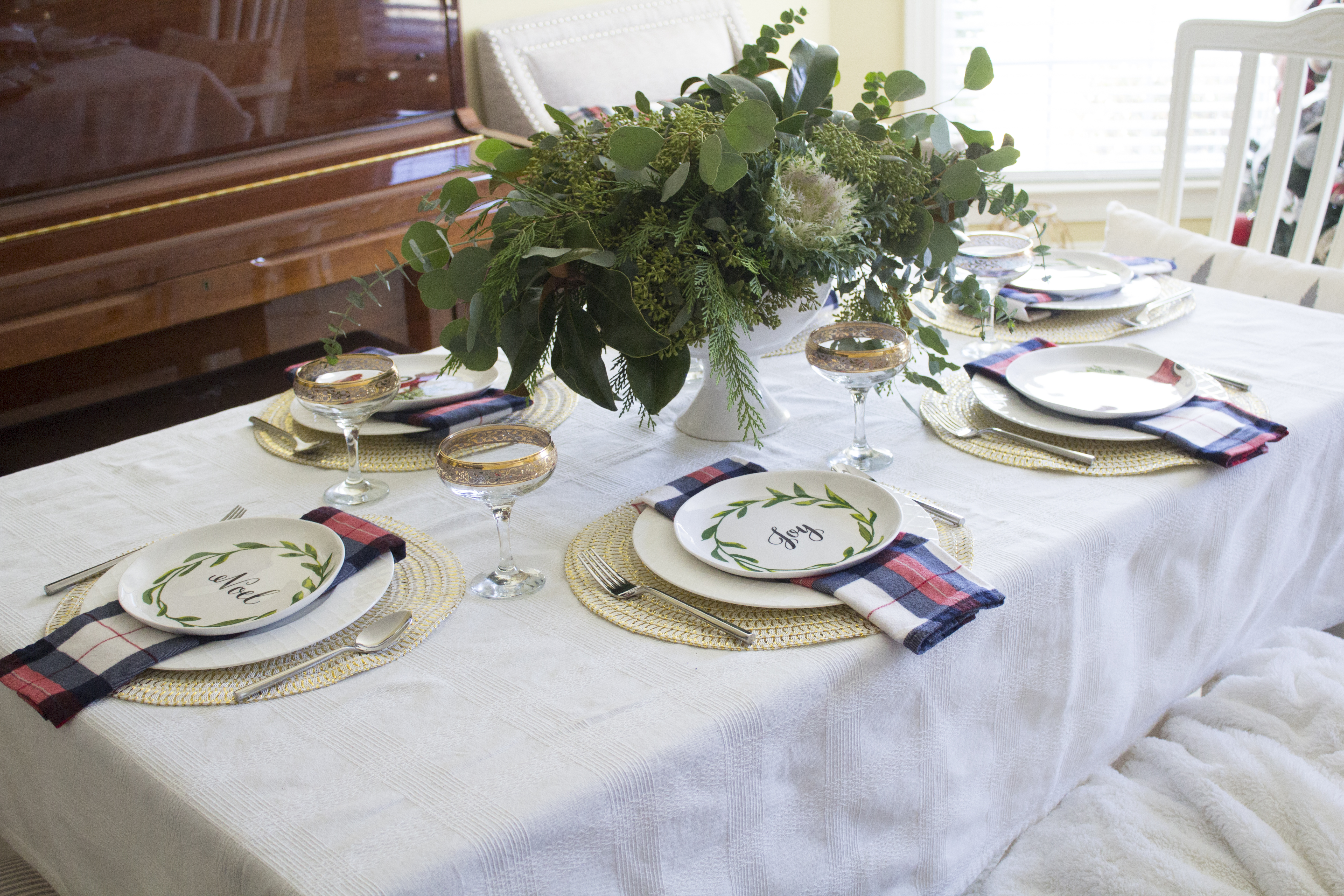 I had these fun Christmas plates from last year and they add a bit of whimsy to the table. I sewed these napkins for my sister’s baby shower many years ago and I always bring them back out every Christmas. They used to be bed sheet!