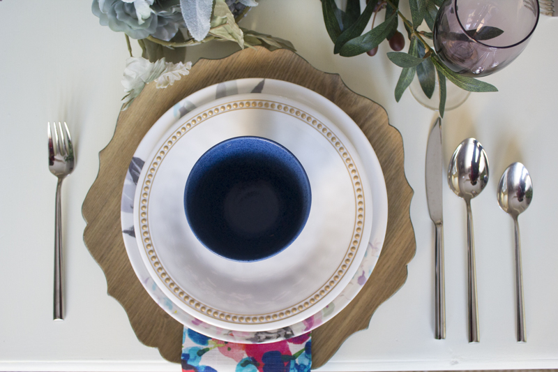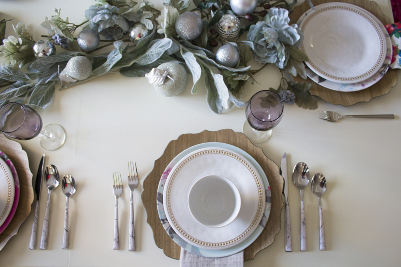 For this year’s Christmas tablescape, I went the untraditional route and used these beautiful floral melamine plates from Amara. I thought the floral plates were so pretty and they came in a combination of 4 different floral patterns. I added a neutral plate on top with a Japanese rice bowl. I also mixed in some floral and neutral napkins. I chose these plates so that they work all year round. If you don’t have holiday plates, just mix and match what you have and create your own tablescape.