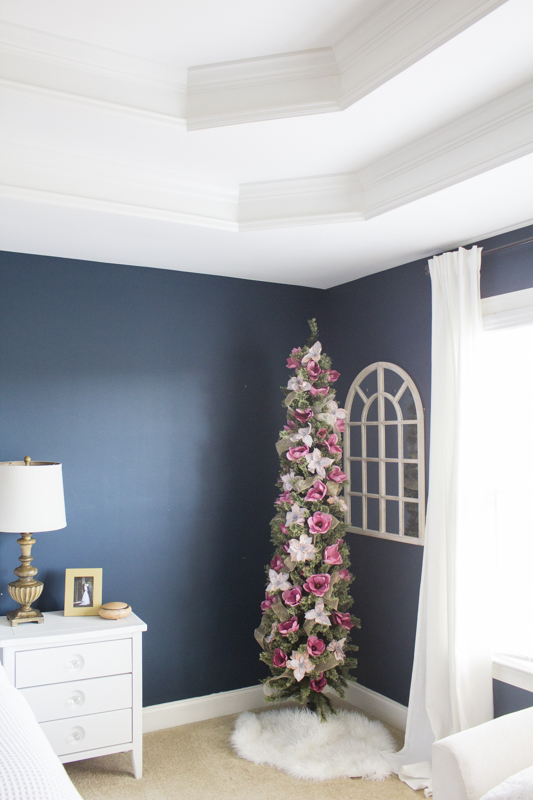 Here’s a little tour of my navy and pink Christmas bedroom.