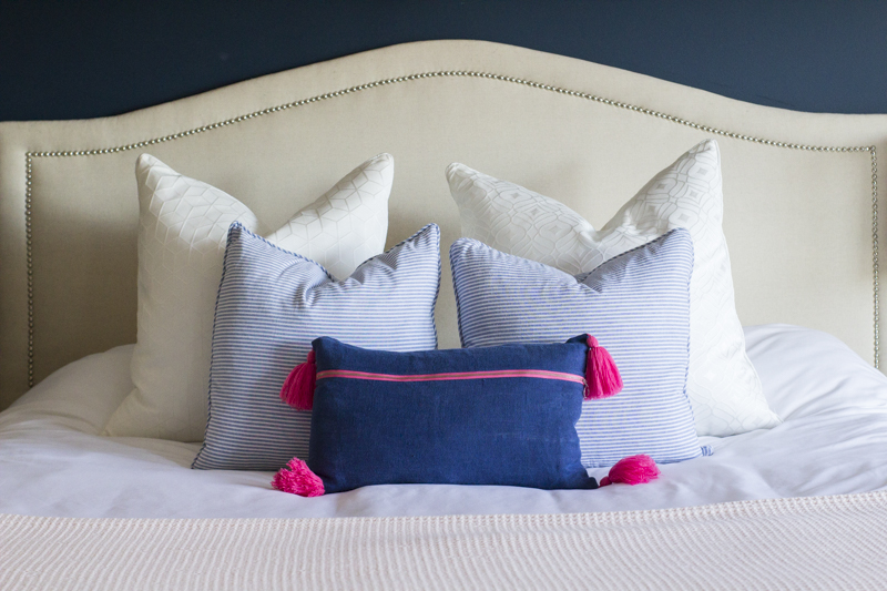 It ties in with the pink and navy going on in the rug. It’s such a fun color combo.