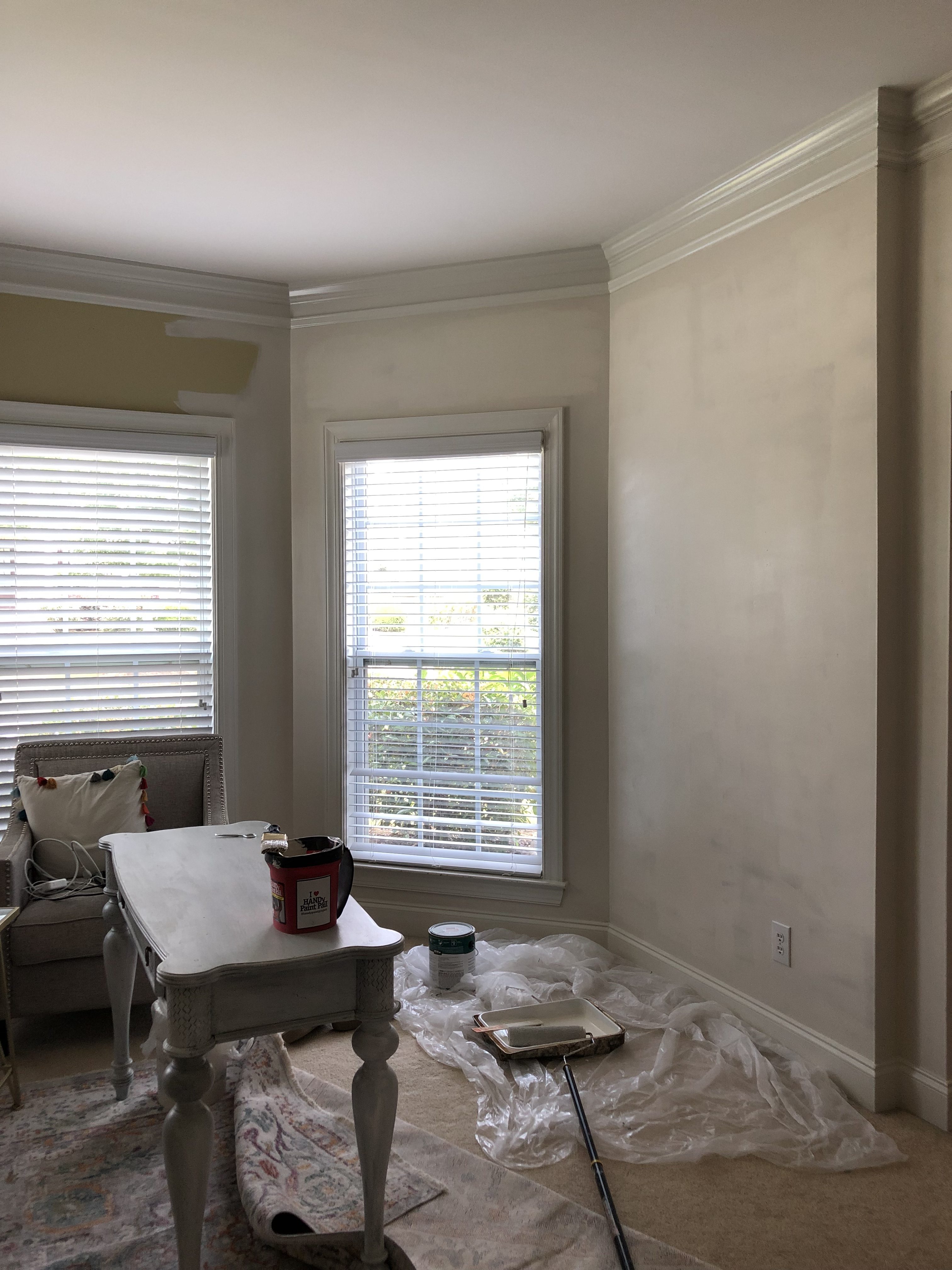 This is after one coat of paint. I used antique white by Porter. It’s a creamy white and I have it color matched at Home Depot using Behr paint.