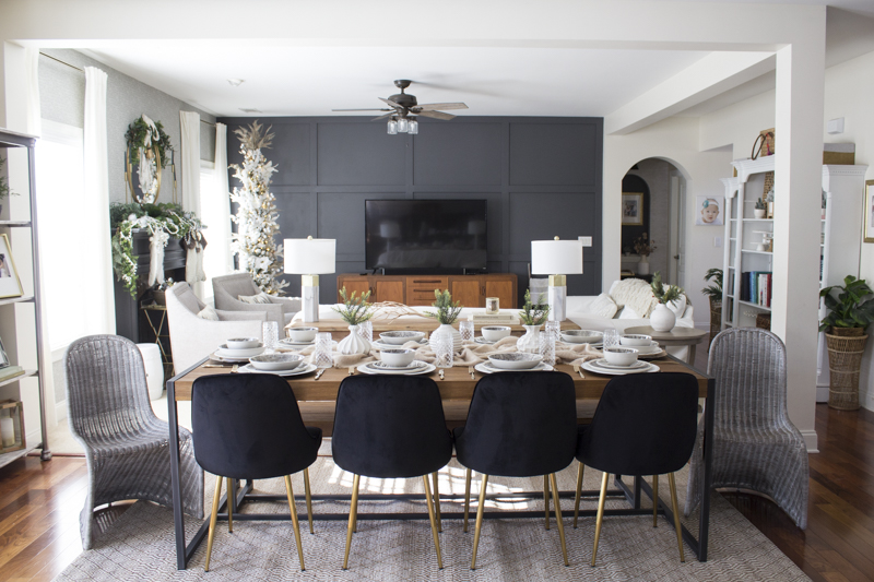 Since we have an open floor plan, the kitchen is one long open space with both the breakfast area and family room. I like to keep this entire space a nice combination of style and function since it’s used the most. When Home Depot asked me to partner with them on getting our home ready for the holidays, I was totally on board. By now, you already know my love for Home Depot is strong especially since I love all things DIY and home improvement. But I was so surprised to see their diverse online selection of home décor and furnishings.