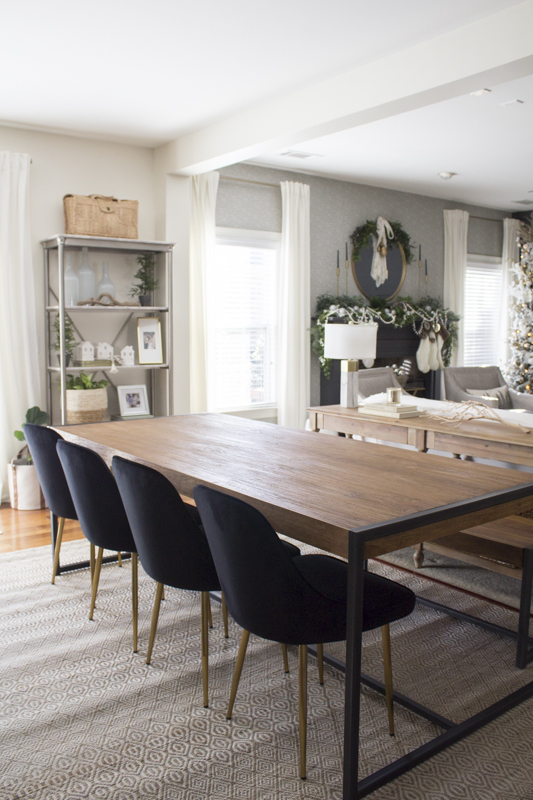 I decided to mix it up with some unique rattan chairs at the end and their shape drew me to the design. I love the curved shape and I chose gray ones to add a nice contrast to the industrial table. Wood and rattan look so good together and the combination of textures adds a nice organic element to the space.