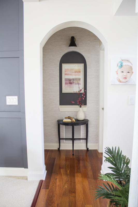 The peel and stick wallpaper in the foyer is also the same as the upstairs hallway.