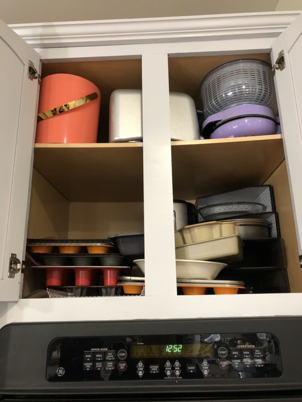 Here’s what it used to look like. #facepalm Every time I needed a cupcake tray, a bunch more trays would fall out. I do a ton of baking so making this small change has really made me so happy!