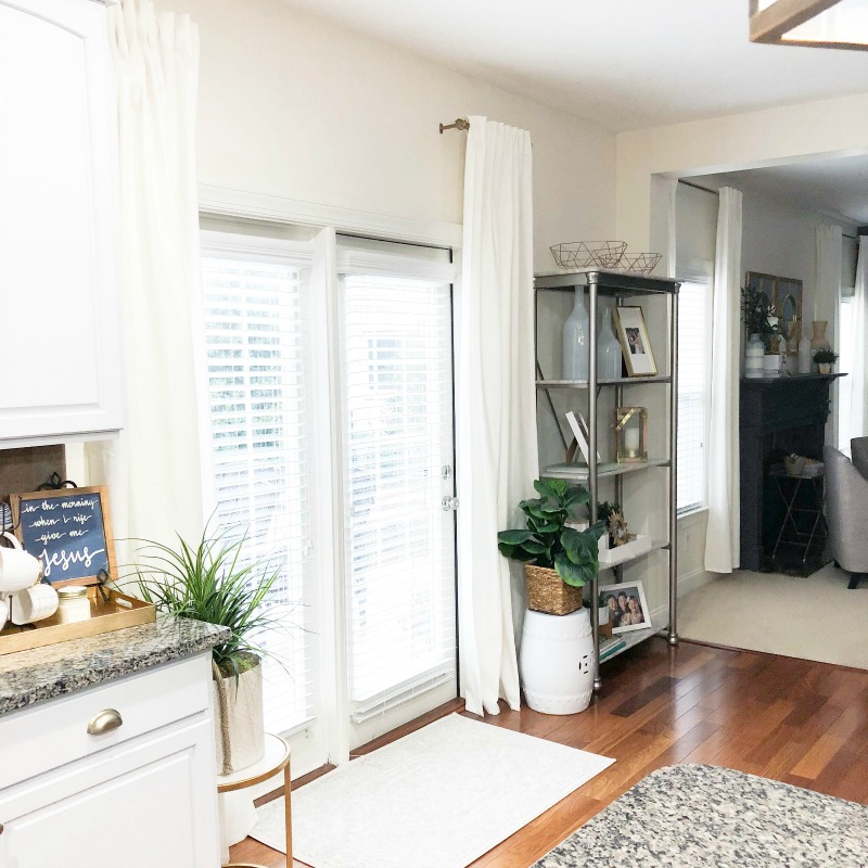 I also shared how a simple pair of curtains really cozied up our kitchen patio doors. You can read all about that here.