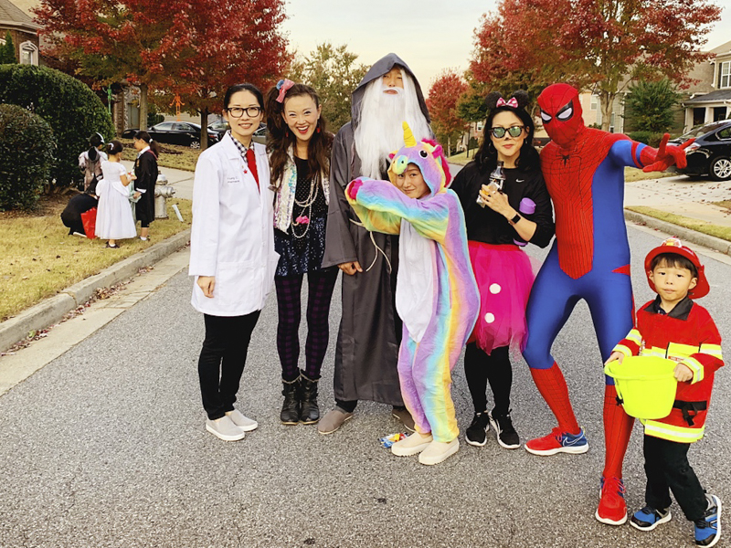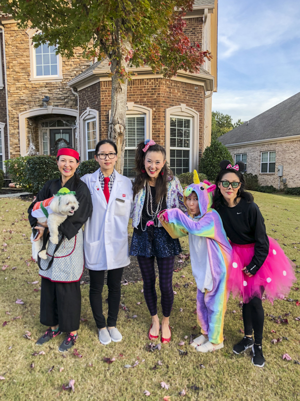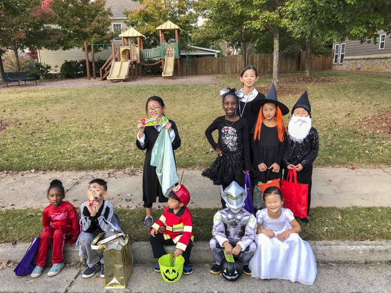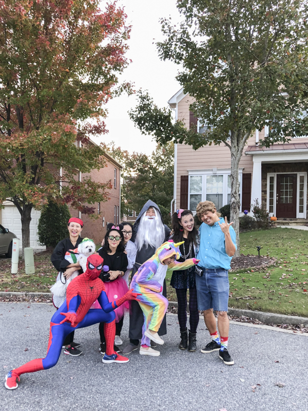 Our neighborhood gang has so much fun every year and we really get into the spirit thanks mostly to that Spiderman guy right there. Mike’s costume is epic every year and helps us all get super creative and have as much as fun as the kids do.