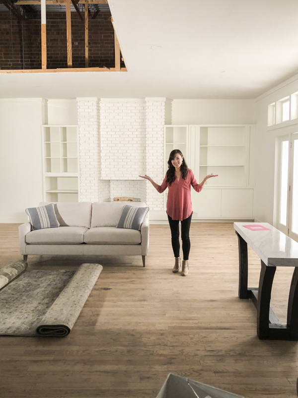 Let me just tell you that their furniture and decor is so so good. Gone are the days of bulky leather recliners. Although they still have those, the selection and quality of their products really impressed me. That’s the sofa I designed in the photo and my room was the only space that had built in bookshelves. Some other bloggers were given spaces with incredible architectural details like tall curved windows, beautiful wooden beams, etc. I can’t wait till you see all of them.