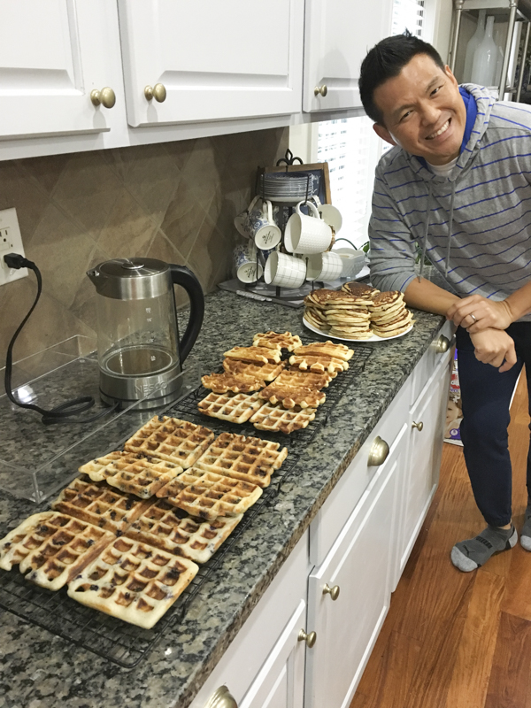 Last Sunday, Jimmy made a ton of pancakes and waffles so we could freeze them. We wanted to reheat them in the mornings for a quick and easy breakfast for the kids. I had planned on serving them the next morning before the kids had to leave for the school bus but the funniest thing happened. Monday morning arrived and we all woke up to the sound of the school bus driving by our house. I totally forgot to set my alarm! Oh well, the rest of the week went well and they had a good breakfast every morning. You do what you can, ya know what I’m saying?