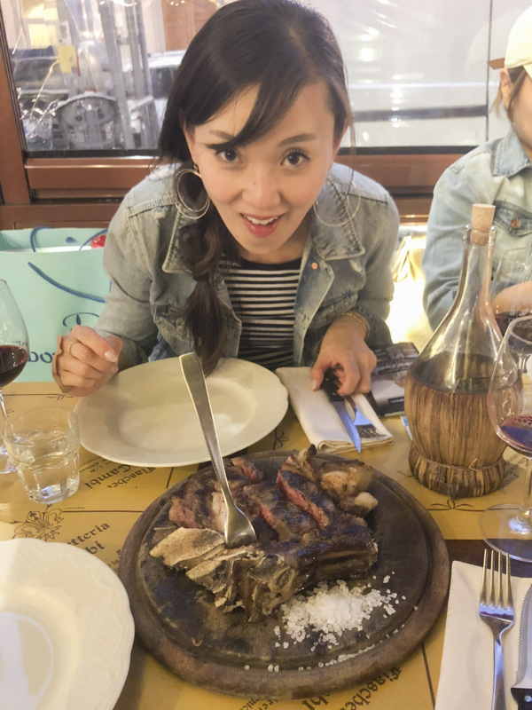 In Florence, you have to have steak. It’s only natural that a city that sells beautiful leather would also make delicious steaks. Sunny’s friend highly recommended this restaurant and it was one of our best meals in Italy. It says it opens at 7 but we got there at 6:30 and dined al fresco. The restaurant get super busy so make sure you get there early.