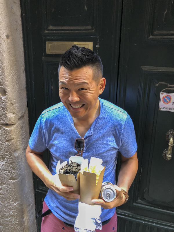 Remember, you’re in Venice. That means seafood galore. Here I am about to eat the seafood pizza. I won’t share this restaurant because we thought the food was mediocre.