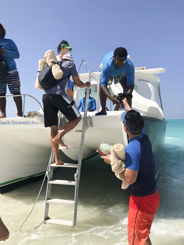 The boat trip includes snacks, fresh conch salad, sandwiches and an open bar.
