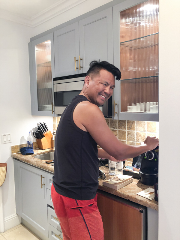 Our room was spacious with a huge bathroom, gigantic shower, kitchenette and patio. There was even a bidet in the water closet and we wish we totally had one now. Cookies were waiting for us in the room. Some of my favorite little details in this resort is that they had complementary coffee using the expresso machine, Harry and Sons teas which are my absolute favorite brand and L’occitane toiletries.