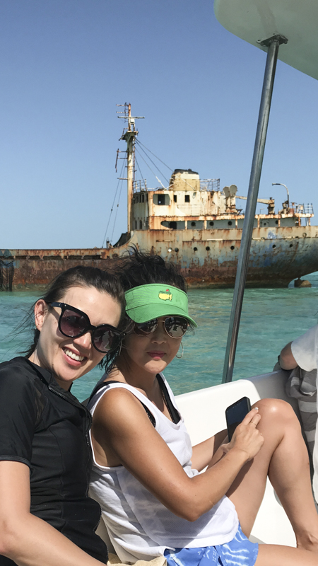 While we were there, the waters were super choppy and the waves were strong. Because of this, we couldn’t go to the reef to the normal snorkeling area. Instead, the boat drove us to the famous grounded shipwreck, La Famille Express.