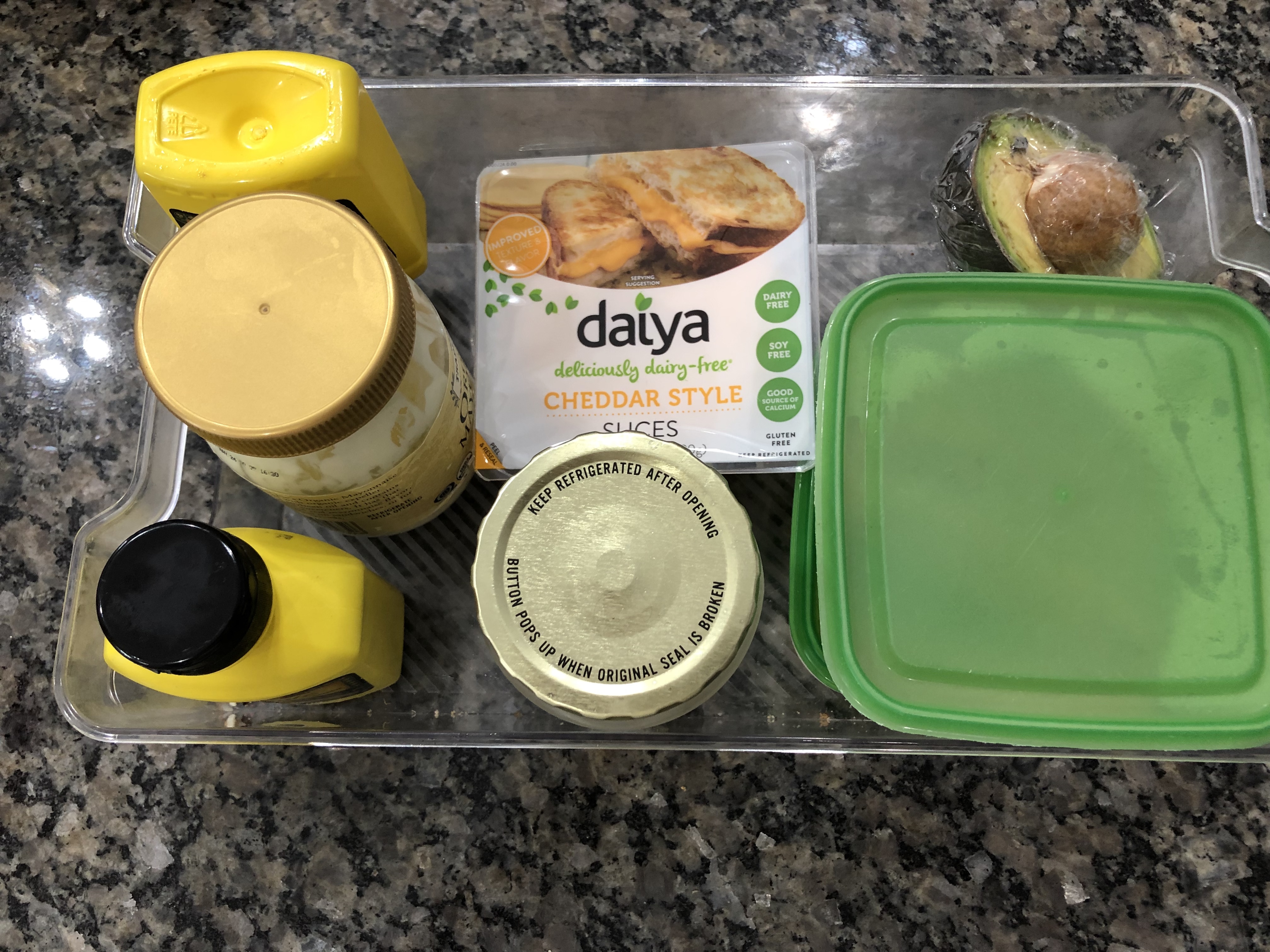 This is one of the best things that I can tell you! Place all your condiments and sandwich making ingredients into clear containers and keep them in the fridge. Instead of taking each item out one by one and looking for that missing mayo, now you’ll have all of them together in one place.