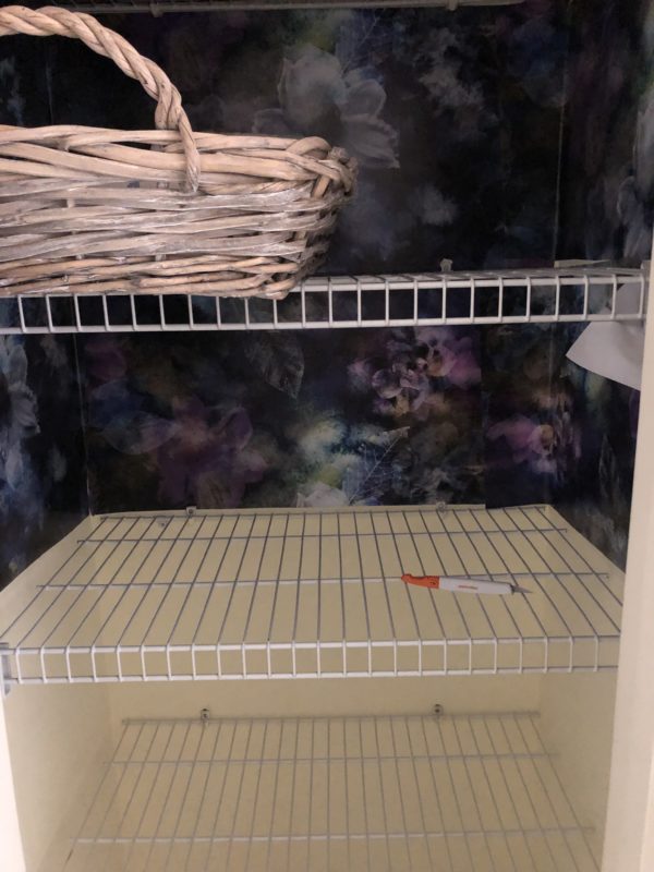 The best part was that I literally had just enough to fit the linen closet. This is the same wallpaper I used in my dining room. I also love using any extra peel and stick wallpaper remnants to line drawers.
