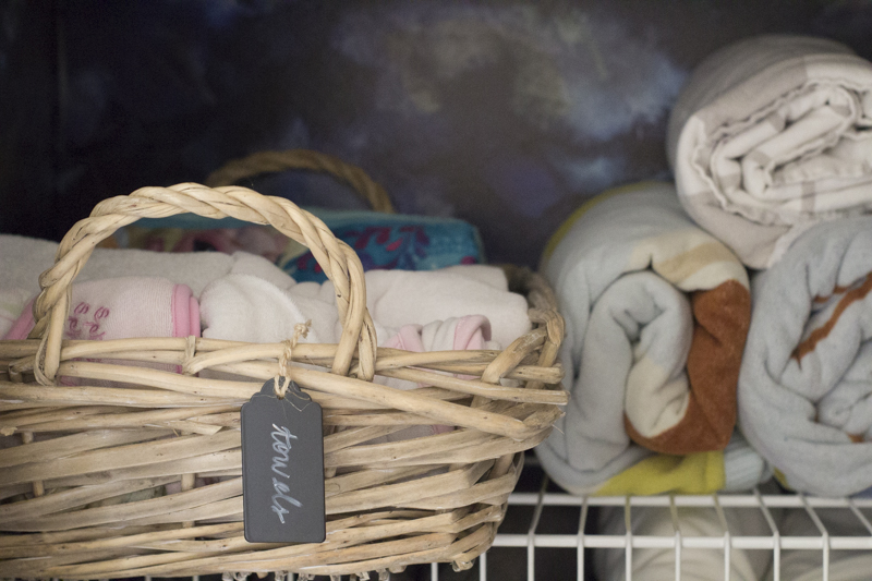A black fabric bin on top holds a bunch of winter accessories and keeps it nice and hidden. There is now so much space left in the linen closet and I’m really happy with that. Just because you have the space for it doesn’t mean it needs to be completely full.