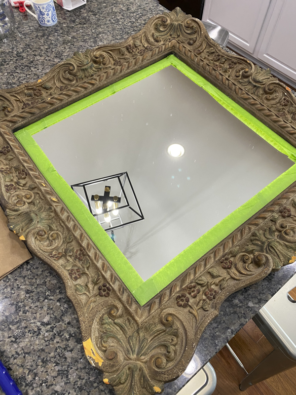 I also decided to give this old ornate mirror a makeover. There were a bunch of areas where the bronze finish was peeling off.