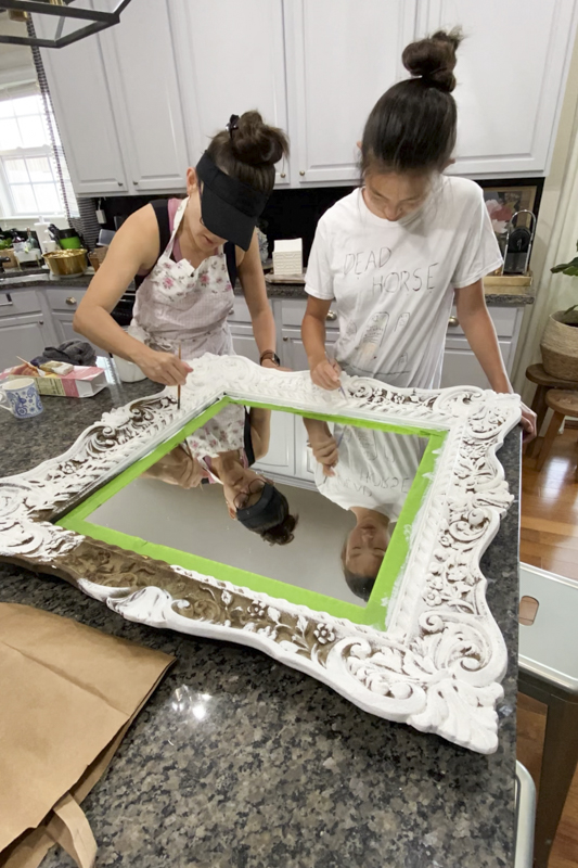 Jules and I decided to give the mirror a white coat of paint to give it a completely new look. We have been doing a bunch of projects together during this quarantine.