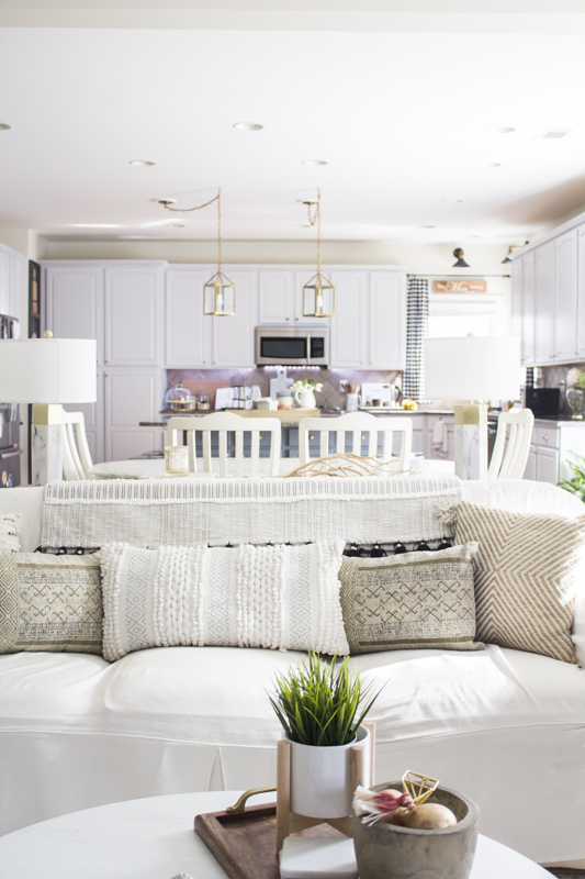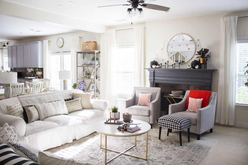 I brought out all my black accented throws and added them into the room for some pops of black.