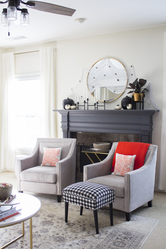 Love your Halloween touches! So fun. That mantel is super cute! I love the dark gray paneled wall too, it looks amazing! xo