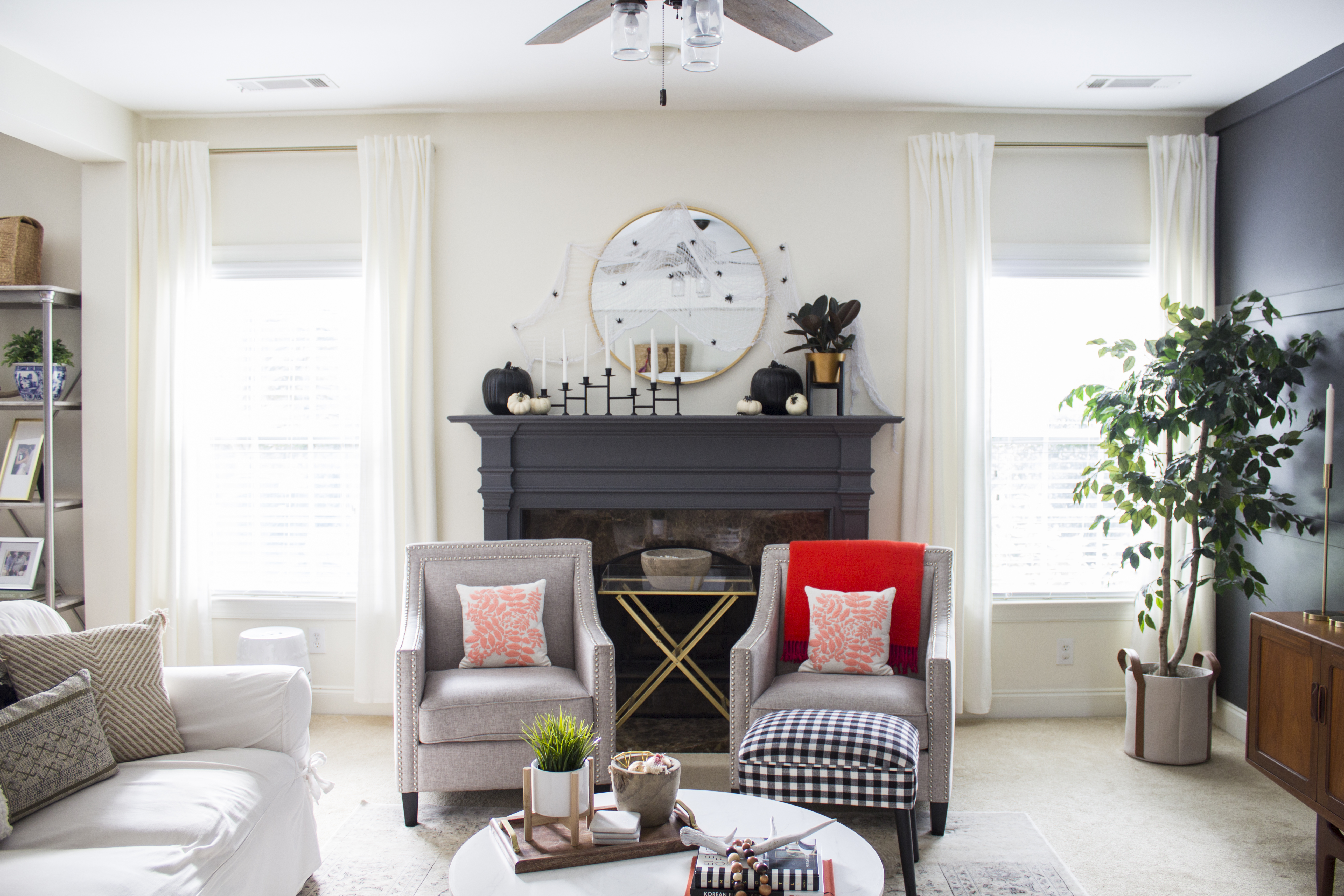 Every year when we near the end of September, my kids get so excited to start decorating for Halloween. We can’t handle anything too spooky but man do they love those cheap spider webs and fake spiders of all sizes. For my son, this is just another excuse to take out his container of fake arachnids and put them all over the house. It’s the only time of year these nasty things are welcomed as part of our home decor. Here’s how to add fun Halloween elements to your home in a stylish and not too spooky way.