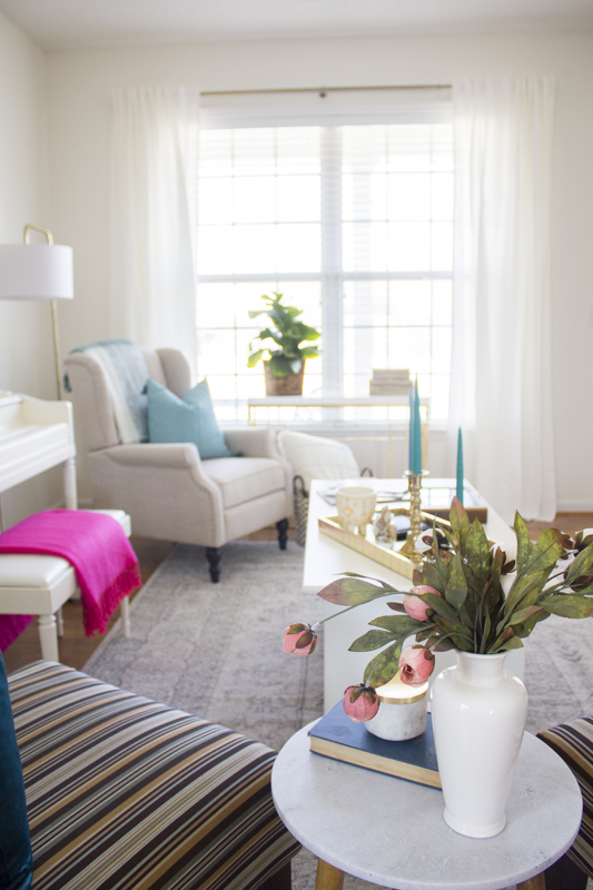 I always make sure to add greenery because it adds color and life to every space.