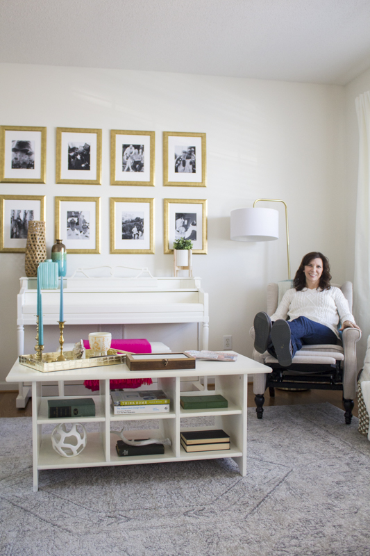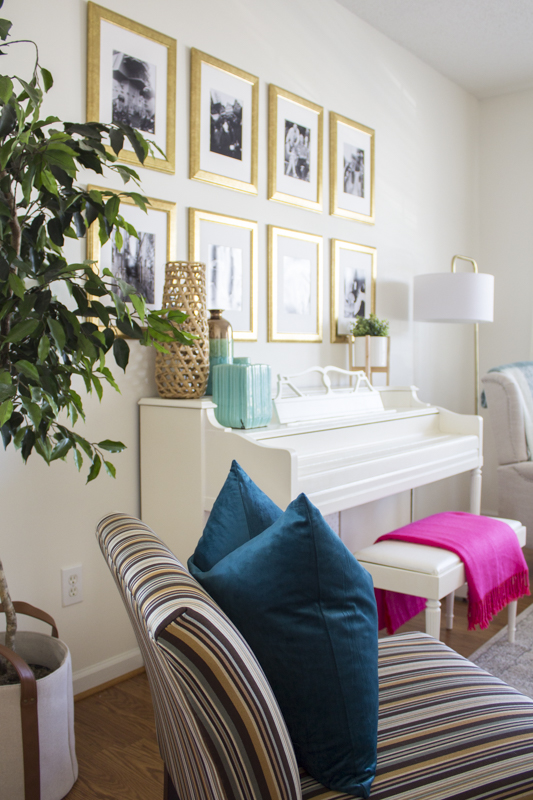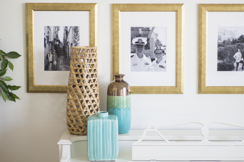 I loved installing this gallery wall with special black and white photos. Cheryl is in the Navy and so you can see a lot of special photos of her and her family in uniform. She also does a ton of voice over work so you’ve probably heard her voice in commercials on tv or radio! She is a woman of many talents.