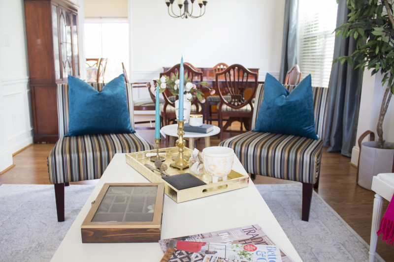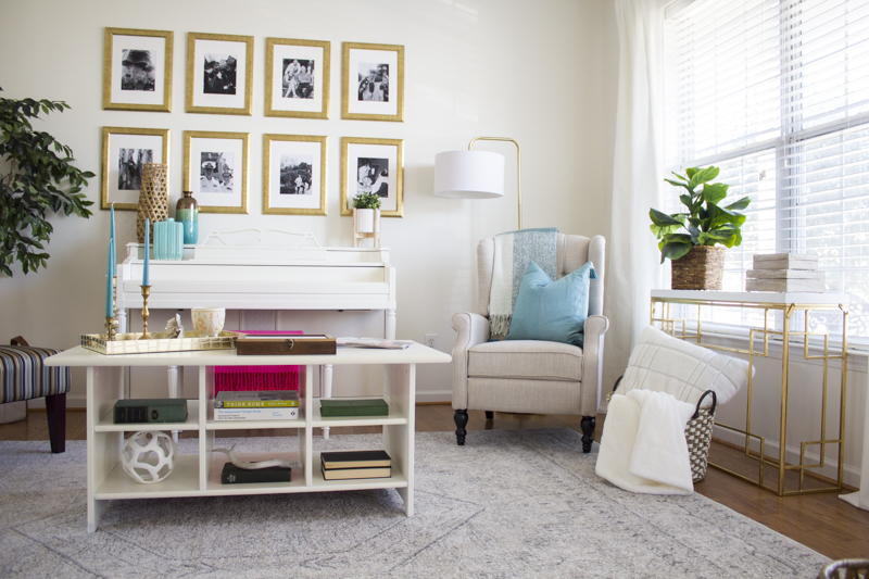 Today, I’m so so excited to share this client reveal with you. This space belongs to my good friend, Cheryl and she was so sweet to entrust me with transforming her den. Cheryl really wanted this unused den space to become a place for her to read and do work. She has already told me how much she loves using her new space to do just that. It has already inspired her to be more productive in that space. I just love that because I find that to be true too. When a space has a specific purpose, it really does inspire us to be more productive and helps us to maximize that area. I just love that I got to help create a newly purposed room for Cheryl. Plus, it’s the first room you see when you enter into the house!