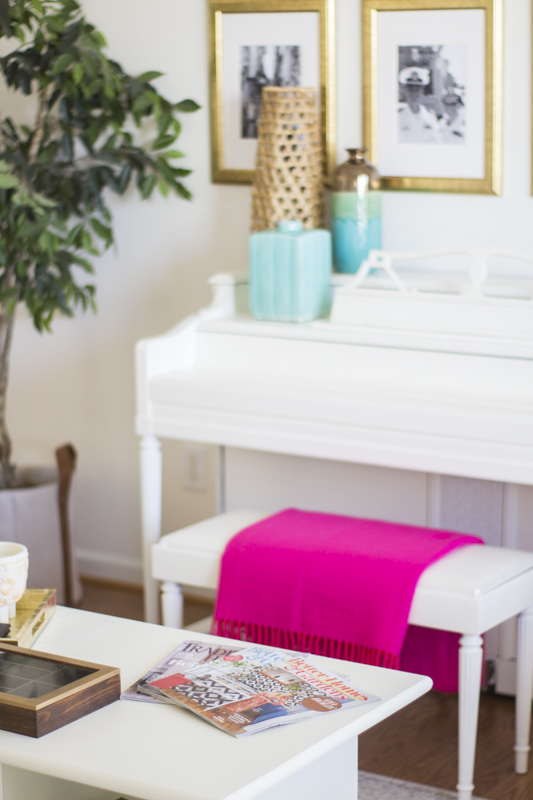 I used pops of aqua and turquoise against the neutral backdrop.