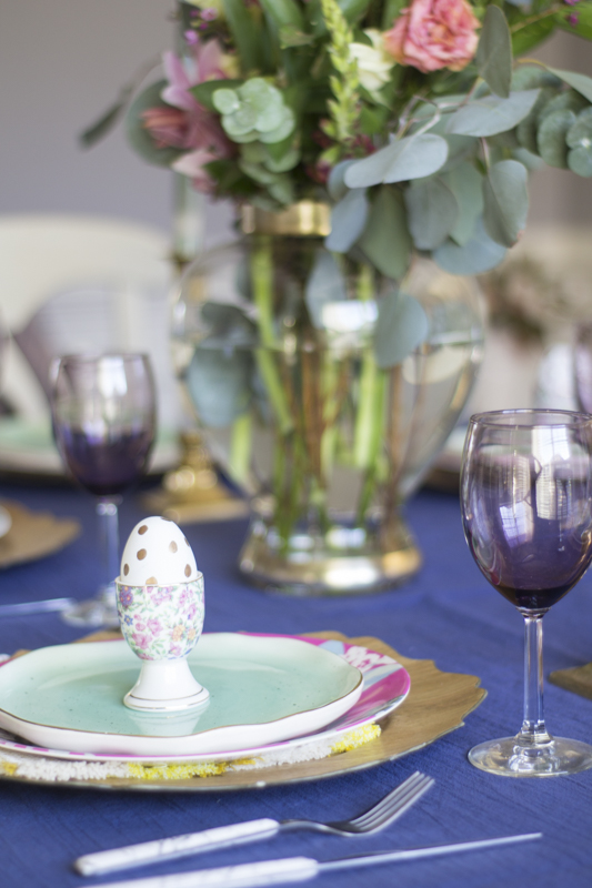 Yuni your tablescape and your flowers are simply gorgeous! I love all the mixing and matching of color and pattern, but I think my favorite thing has to be the adorable floral egg cups! so cute!