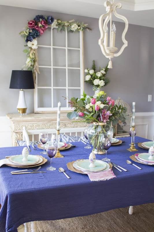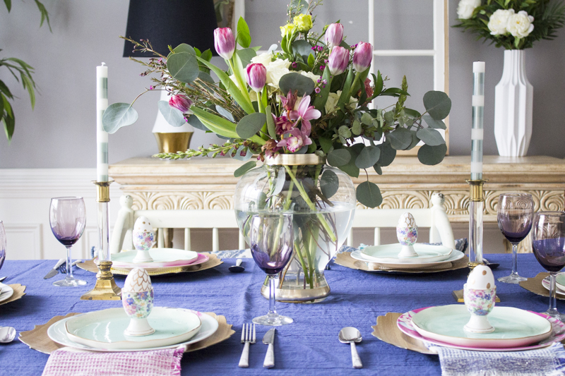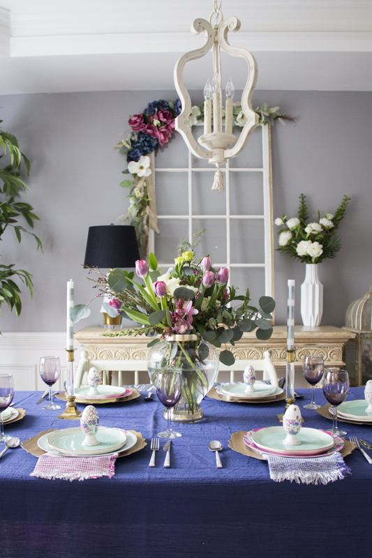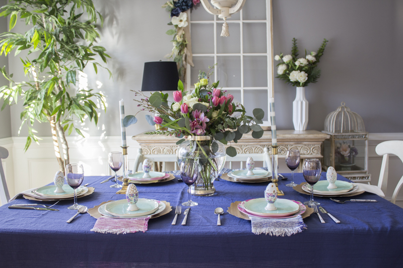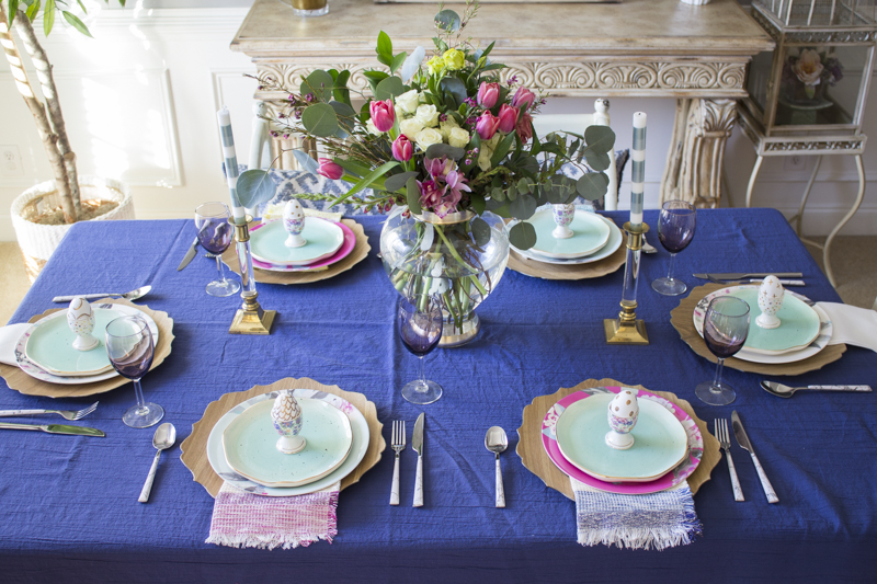 This year’s colorful Easter tablescape is inspired by florals and a mix of casual and formal pieces.