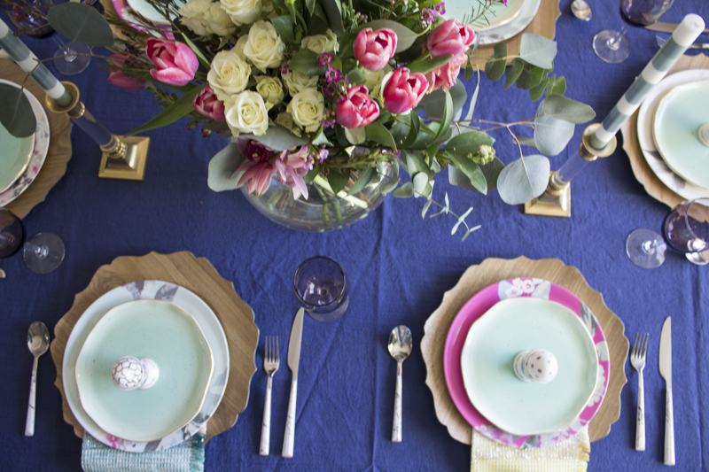 The mix and matched plates and napkins keep it playful yet chic without feeling too formal. The linen table cover keeps it a bit more casual and I love that you can choose not to iron it. It’s the lazy woman’s tablescape linen and I like it!