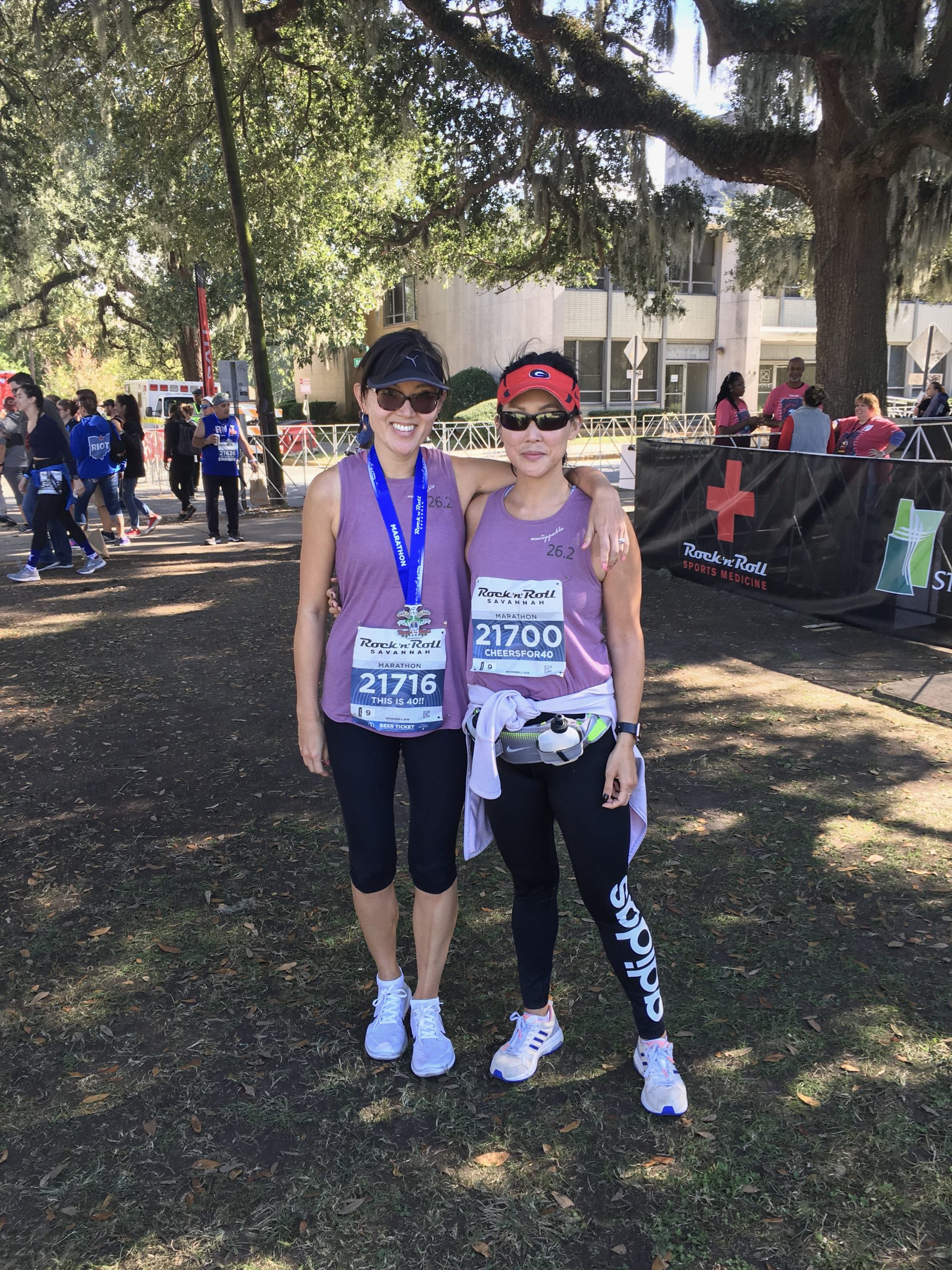 Here’s a little backstory. Jennifer is also my neighbor and she’s my exercise buddy. She’s the one I ran a marathon with last Fall. We thought it was a good idea to run our first marathon when we turned 40. Don’t ask why we thought that was a good idea! We trained throughout the entire summer months in GA and it was brutal! Oh well, we survived and have the craziest stories to tell from that experience.