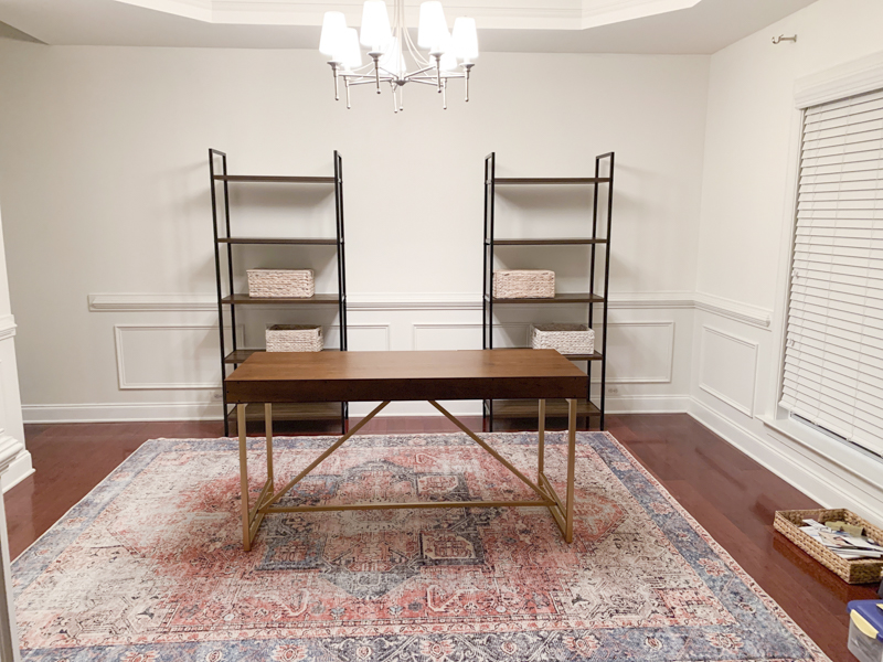 So good right?! I own those same bookshelves in a different color for my staging room and am happy with the quality and price. We went with a similar desk since the other one was sold out. We actually ended up really loving this one because it looks more mid-century modern.